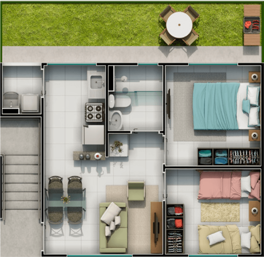2 Quartos, Térreo/Garden